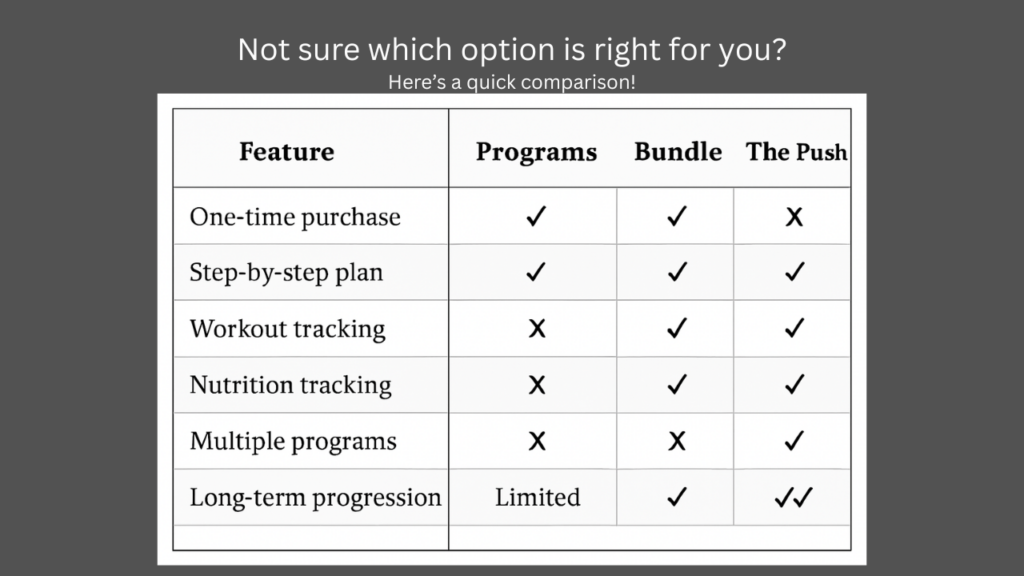 Ready to make this a lifestyle? The Push gives you access to multiple training programs, workout tracking, nutrition, and the tools you need to keep progressing long-term. This is where training becomes part of who you are. 7-day FREE trial included.
